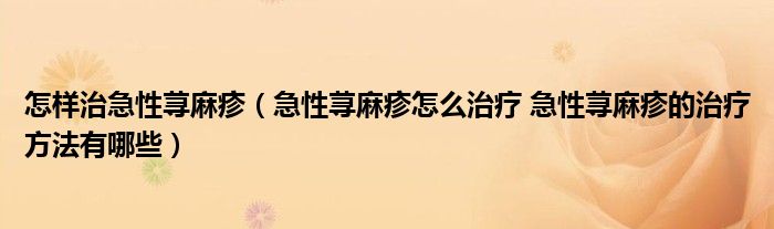 大家好,linda来为大家解答以上的问题。怎样治急性荨麻疹,急性荨麻疹怎么治疗 急性荨麻疹的治疗方法有哪些很多人还不知道,现在让我们一起来看看吧!