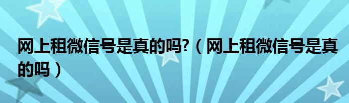 网上租微信号是真的吗?(网上租微信号是真的吗)