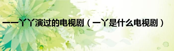 一一丫丫演过的电视剧(一丫是什么电视剧)