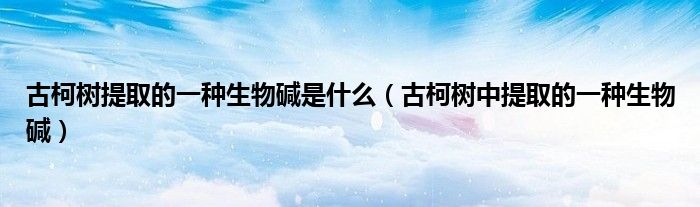 大家好,小晋来为大家解答以下问题,关于古柯树提取的一种生物碱是什么,古柯树中提取的一种生物碱很多人还不知道,今天让我们一起来看看吧!