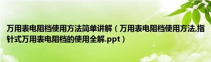 大家好,小常来为大家解答以上问题。万用表电阻档使用方法简单讲解,万用表电阻档使用方法,指针式万用表电阻档的使用全解.ppt很多人还不知道,现在让我们一起来看看吧!