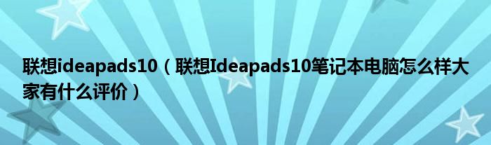 1,联想Ideapads10笔记本电脑怎么样?大家有什么评价:它的配置,能运行QQ之类的东西。不过你要想玩大游戏这款电脑是联想公司低端市场的主打,看电影。是一款针对上网用的笔记本,因为3G时代马上就来临了。它的处理器只有1.6Gz intel Aom处理器 不能和双核比,因为他是低耗电。小本嘛。,玩一些小游戏。2D类的。适合人群,女生,中学生,很不错,就别买他了