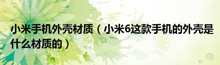 大家好,小常来为大家解答以上问题。小米手机外壳材质,小米6这款手机的外壳是什么材质的很多人还不知道,现在让我们一起来看看吧!