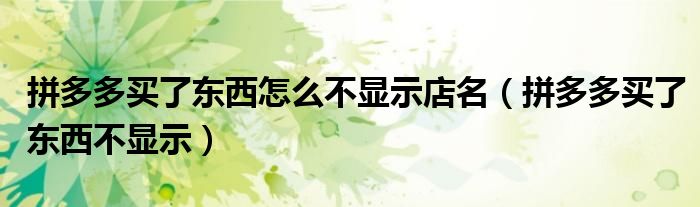 大家好,跳跳为你解答以上问题。拼多多买了东西怎么不显示店名,拼多多买了东西不显示这个问题很多人还不知道,现在让我们一起来看看吧!
