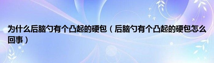 大家好,linda来为大家解答以上的问题。为什么后脑勺有个凸起的硬包,后脑勺有个凸起的硬包怎么回事很多人还不知道,现在让我们一起来看看吧!