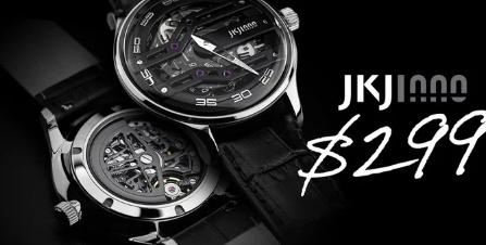 自动手表JKJinno的设计师团队以JKJ01自动机械镂空手表的形式创造了一款新时计,该手表由包含27颗宝石的机芯提供动力,频率为4Hz(28,800A/h),动力储备能够提供长达80小时的连续使用。