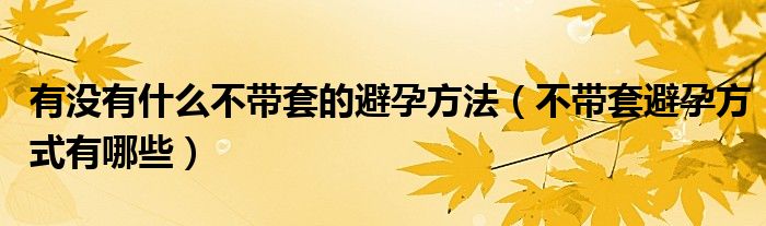 大家好,linda来为大家解答以上的问题。有没有什么不带套的避孕方法,不带套避孕方式有哪些很多人还不知道,现在让我们一起来看看吧!