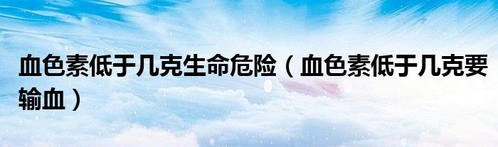 大家好,linda来为大家解答以上的问题。血色素低于几克生命危险,血色素低于几克要输血很多人还不知道,现在让我们一起来看看吧!
