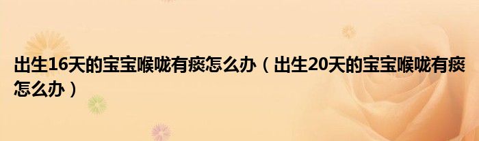 大家好,linda来为大家解答以上的问题。出生16天的宝宝喉咙有痰怎么办,出生20天的宝宝喉咙有痰怎么办很多人还不知道,现在让我们一起来看看吧!