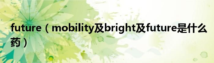 大家好,小常来为大家解答以下问题,对于future,mobility及bright及future是什么药很多人还不知道,今天让我们一起来看看吧!