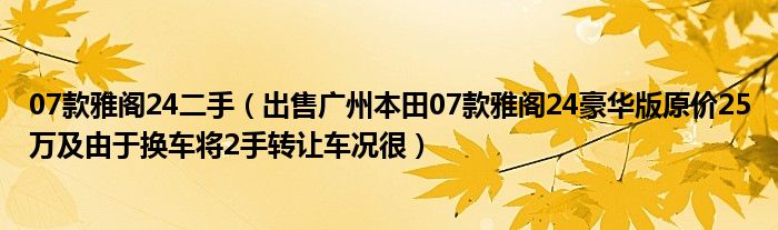 大家好,小常来为大家解答以下问题,对于07款雅阁24二手,出售广州本田07款雅阁24豪华版原价25万及由于换车将2手转让车况很很多人还不知道,今天让我们一起来看看吧!