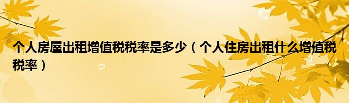 关于个人房屋出租增值税税率是多少,个人住房出租什么增值税税率这个很多人还不知道,今天菲菲来为大家解答以上的问题,现在让我们一起来看看吧!