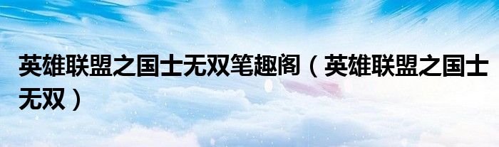 英雄联盟之国士无双笔趣阁(英雄联盟之国士无双)