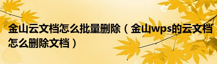 关于金山云文档怎么批量删除,金山wps的云文档怎么删除文档这个很多人还不知道,今天菲菲来为大家解答以上的问题,现在让我们一起来看看吧!