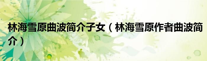 关于林海雪原曲波简介子女,林海雪原作者曲波简介这个很多人还不知道,今天菲菲来为大家解答以上的问题,现在让我们一起来看看吧!