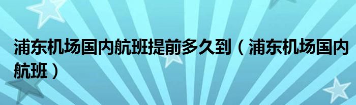 关于浦东机场国内航班提前多久到,浦东机场国内航班这个很多人还不知道,今天菲菲来为大家解答以上的问题,现在让我们一起来看看吧!