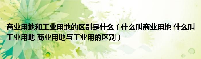 关于商业用地和工业用地的区别是什么,什么叫商业用地 什么叫工业用地 商业用地与工业用的区别这个很多人还不知道,今天菲菲来为大家解答以上的问题,现在让我们一起来看看吧!