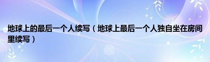 关于地球上的最后一个人续写,地球上最后一个人独自坐在房间里续写这个很多人还不知道,今天菲菲来为大家解答以上的问题,现在让我们一起来看看吧!
