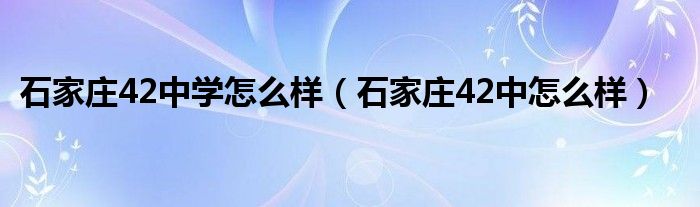 关于石家庄42中学怎么样,石家庄42中怎么样这个很多人还不知道,今天菲菲来为大家解答以上的问题,现在让我们一起来看看吧!