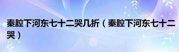 关于秦腔下河东七十二哭几折,秦腔下河东七十二哭这个很多人还不知道,今天菲菲来为大家解答以上的问题,现在让我们一起来看看吧!