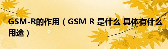 关于GSM-R的作用,GSM R 是什么 具体有什么用途这个很多人还不知道,今天菲菲来为大家解答以上的问题,现在让我们一起来看看吧!