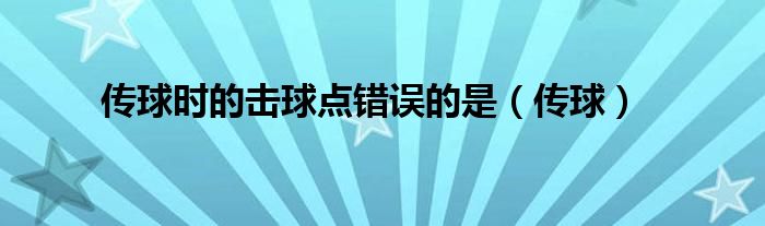 关于传球时的击球点错误的是,传球这个很多人还不知道,今天菲菲来为大家解答以上的问题,现在让我们一起来看看吧!