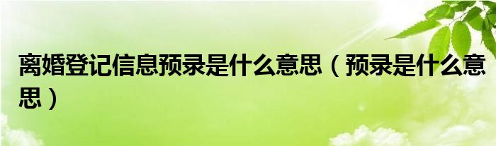 关于离婚登记信息预录是什么意思,预录是什么意思这个很多人还不知道,今天菲菲来为大家解答以上的问题,现在让我们一起来看看吧!