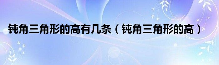 关于钝角三角形的高有几条,钝角三角形的高这个很多人还不知道,今天菲菲来为大家解答以上的问题,现在让我们一起来看看吧!