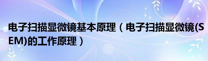 关于电子扫描显微镜基本原理,电子扫描显微镜(SEM)的工作原理这个很多人还不知道,今天菲菲来为大家解答以上的问题,现在让我们一起来看看吧!