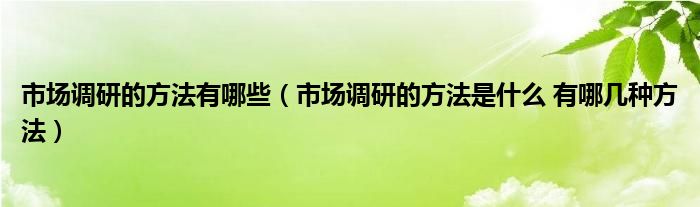 关于市场调研的方法有哪些,市场调研的方法是什么 有哪几种方法这个很多人还不知道,今天菲菲来为大家解答以上的问题,现在让我们一起来看看吧!