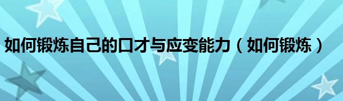 关于如何锻炼自己的口才与应变能力,如何锻炼这个很多人还不知道,今天菲菲来为大家解答以上的问题,现在让我们一起来看看吧!