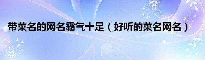 关于带菜名的网名霸气十足,好听的菜名网名这个很多人还不知道,今天菲菲来为大家解答以上的问题,现在让我们一起来看看吧!