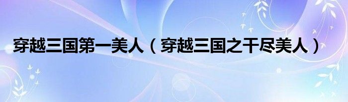 关于穿越三国第一美人,穿越三国之干尽美人这个很多人还不知道,今天菲菲来为大家解答以上的问题,现在让我们一起来看看吧!