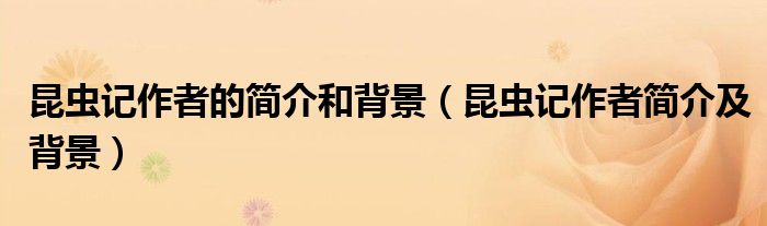 关于昆虫记作者的简介和背景,昆虫记作者简介及背景这个很多人还不知道,今天菲菲来为大家解答以上的问题,现在让我们一起来看看吧!