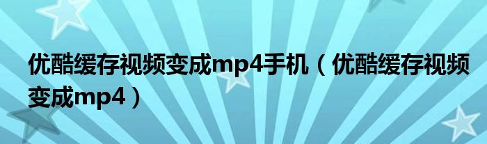 大家好,小晋来为大家解答以下问题,关于优酷缓存视频变成mp4手机,优酷缓存视频变成mp4很多人还不知道,今天让我们一起来看看吧!
