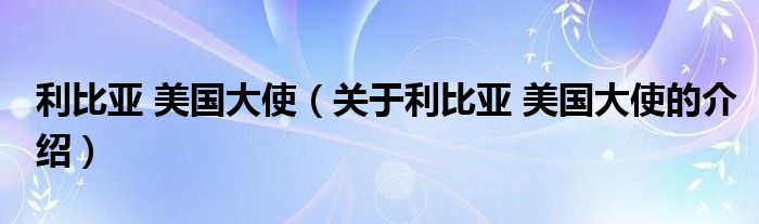 大家好,今天小乐来为大家解答以上的问题。利比亚 美国大使,关于利比亚 美国大使的介绍很多人还不知道,现在让我们一起来看看吧!