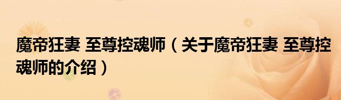 大家好,今天小乐来为大家解答以上的问题。魔帝狂妻 至尊控魂师,关于魔帝狂妻 至尊控魂师的介绍很多人还不知道,现在让我们一起来看看吧!
