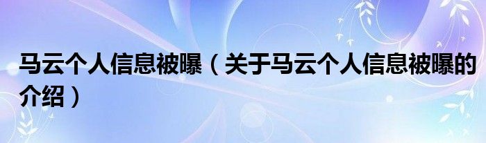 大家好,今天小乐来为大家解答以上的问题。马云个人信息被曝,关于马云个人信息被曝的介绍很多人还不知道,现在让我们一起来看看吧!