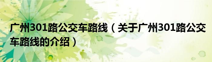 1、广州公交301路是一条公交线路。