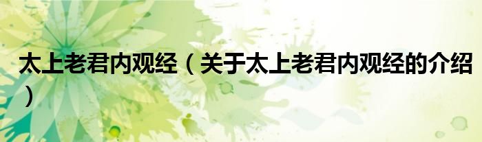 大家好,小都来为大家解答以上的问题。太上老君内观经,关于太上老君内观经的介绍很多人还不知道,现在让我们一起来看看吧!