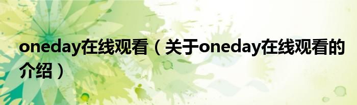 大家好,小都来为大家解答以上的问题。oneday在线观看,关于oneday在线观看的介绍很多人还不知道,现在让我们一起来看看吧!