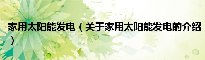 大家好,小都来为大家解答以上的问题。家用太阳能发电,关于家用太阳能发电的介绍很多人还不知道,现在让我们一起来看看吧!