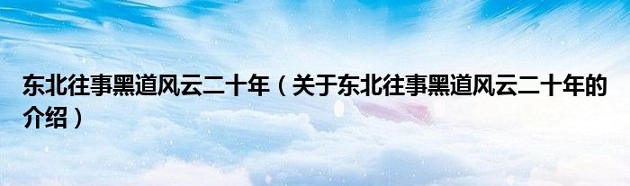 大家好,小都来为大家解答以上的问题。东北往事黑道风云二十年,关于东北往事黑道风云二十年的介绍很多人还不知道,现在让我们一起来看看吧!