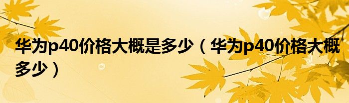 大家好,雨雨来为大家解答以上问题,华为p40价格大概是多少,华为p40价格大概多少很多人还不知道,现在让我们一起来看看吧!