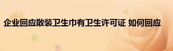 大家好.我是互联百科的羽儿,现在为大家解决以上企业回应散装卫生巾有卫生许可证 如何回应的问题.