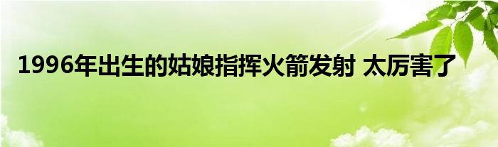 大家好.我是互联百科的羽儿,现在为大家解决以上1996年出生的姑娘指挥火箭发射 太厉害了的问题.