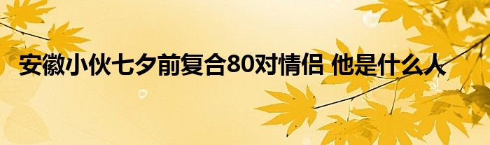 1、近日,一则“安徽小伙七夕前复合80对情侣”的消息引起网友轰动,具体是怎么回事?安徽小伙究竟是什么人物?