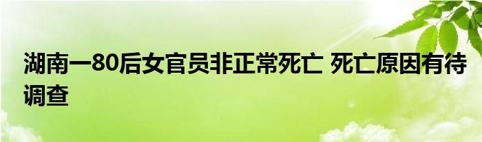 湖南一80后女官员非正常死亡 死亡原因有待调查