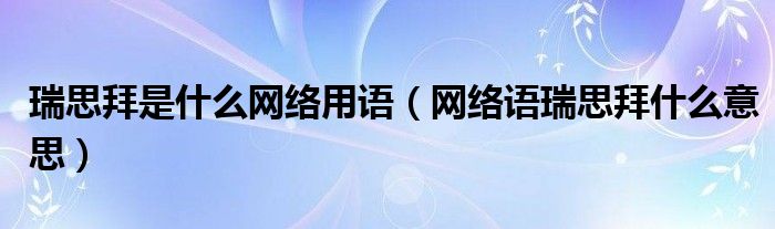瑞思拜是什么网络用语(网络语瑞思拜什么意思)