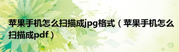 关于苹果手机怎么扫描成jpg格式,苹果手机怎么扫描成pdf这个很多人还不知道,今天菲菲来为大家解答以上的问题,现在让我们一起来看看吧!